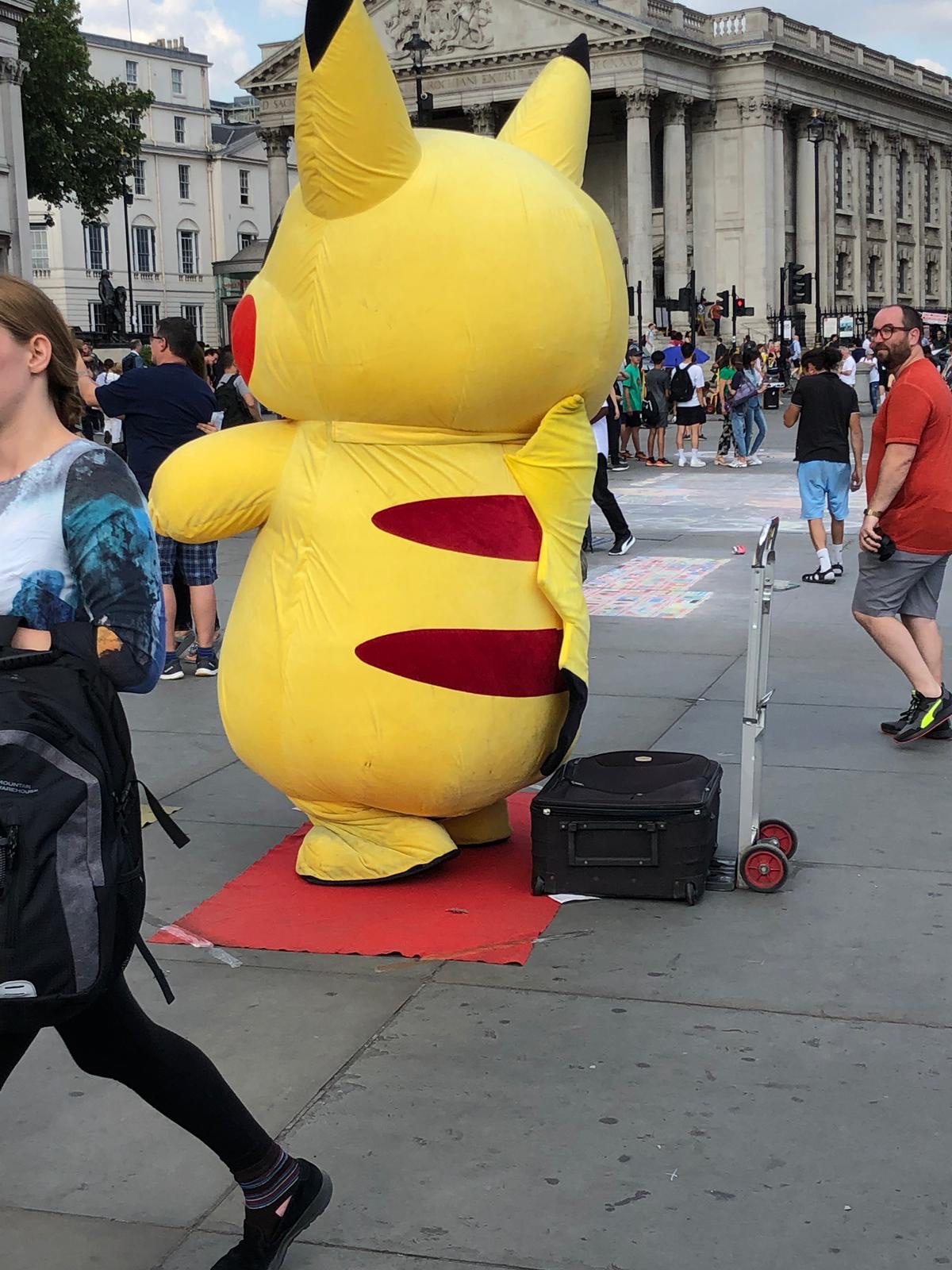 The entire day turned out to be amazing. The weather was very nice. We walked there from home, and encountered this massive Picacu on the way –