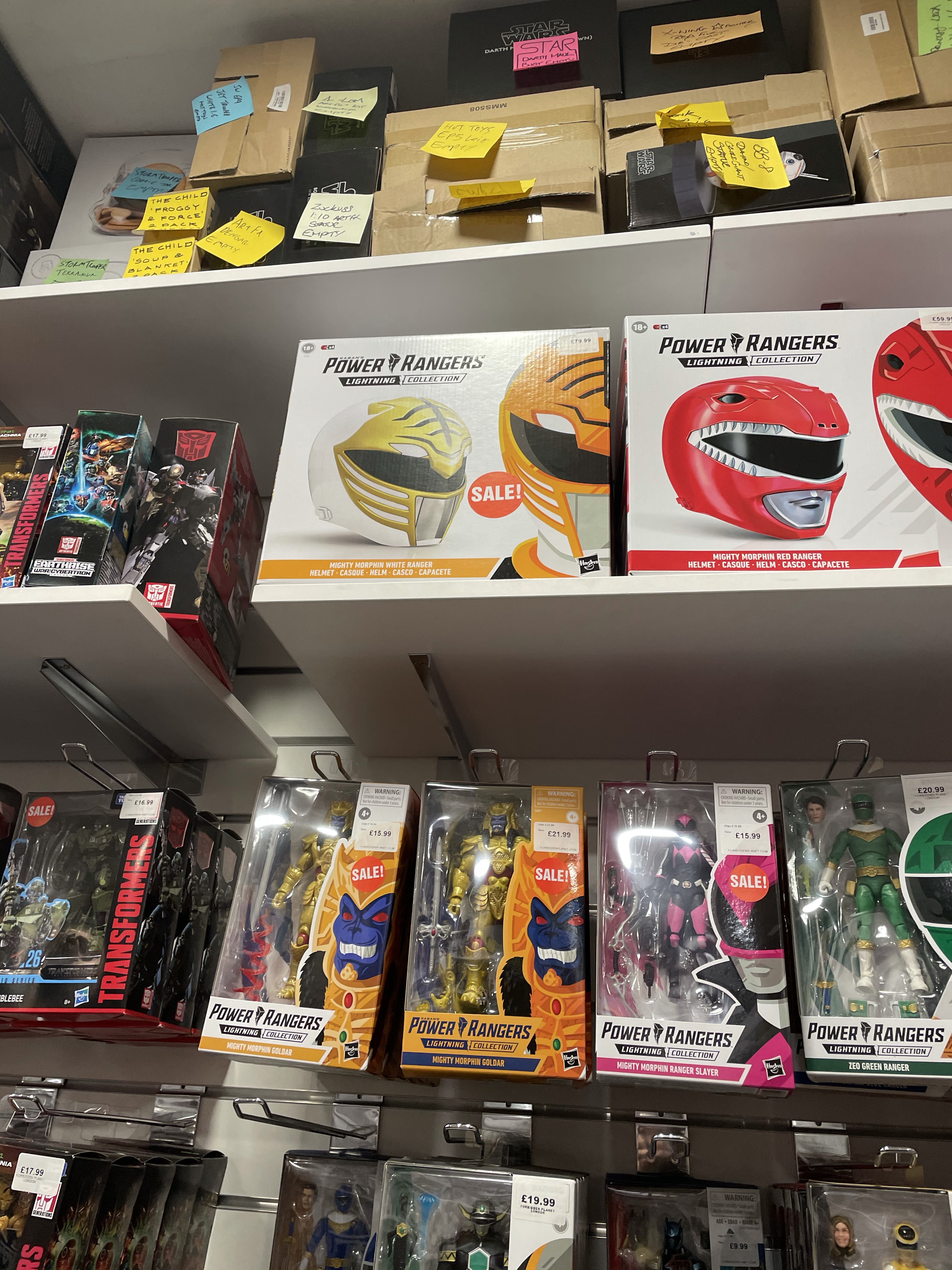 We also went by Forbidden Planet for the first time after it reopened – saw funny face masks, the original Jumanji game, Wallace&Gromit pop star items and sick Power Rangers helmets!