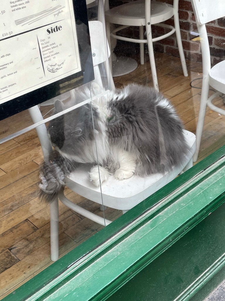Tamerlan and I love pets and cats specifically. This one was very lazy and cute, despite appearing before us in the middle of Soho. We spent 15 minutes just talking to her over the window. She promised to make me a Ceasar salad but didn’t.
